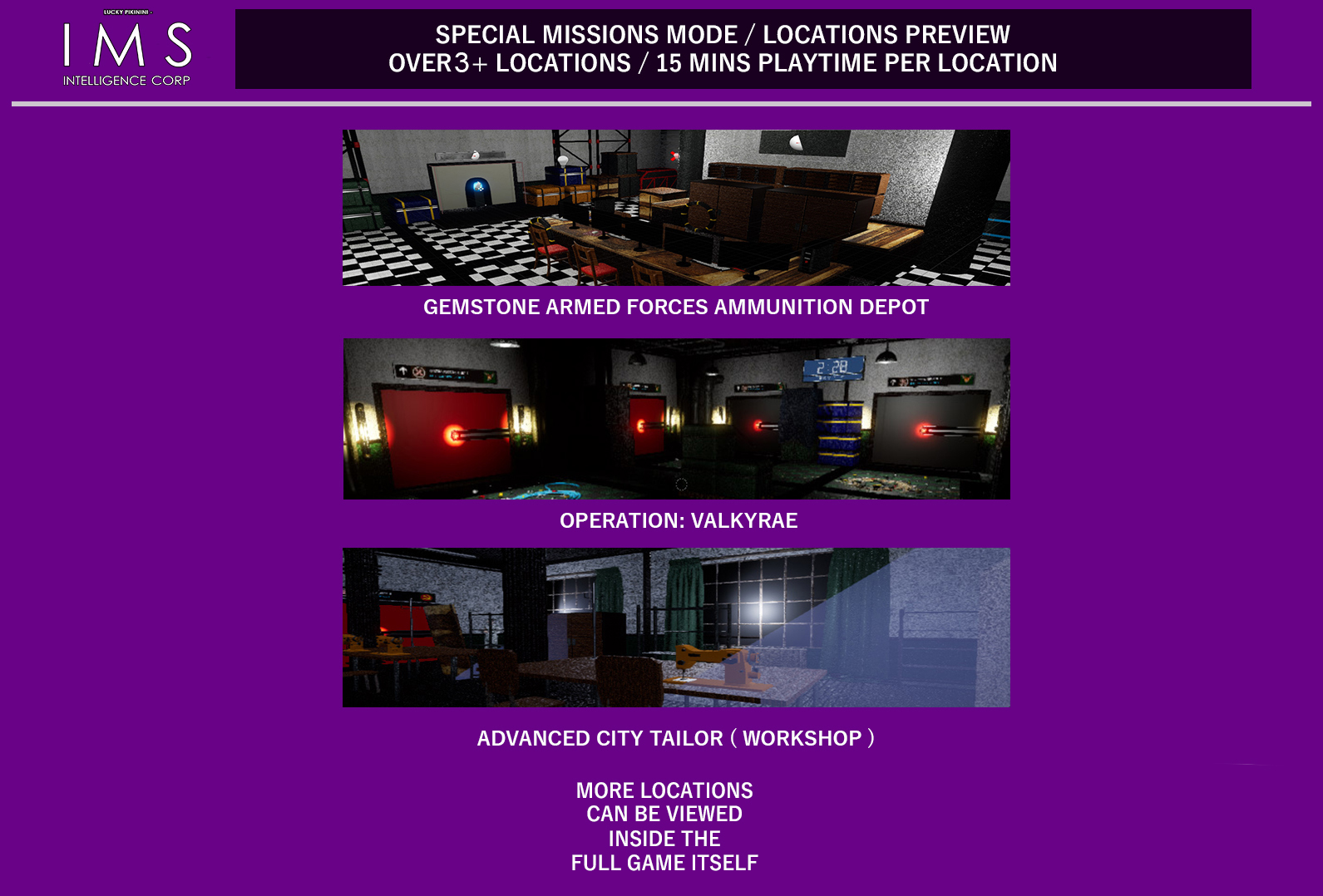 Gamemodes: IMS Intelligence Corp has 3 Playable Modes: Story Mode, Special Missions and Survival Mode.
